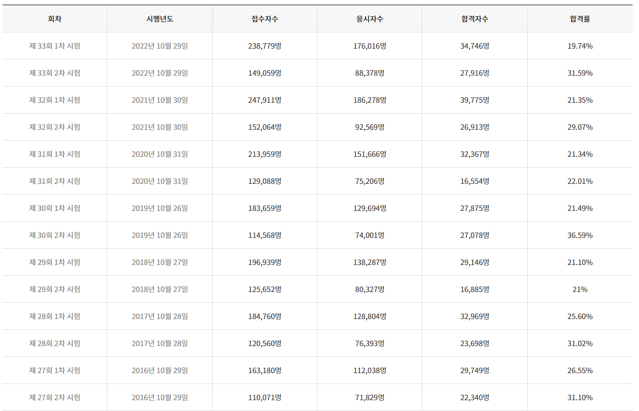 중요한 것은 정확하고 완벽하게 공부하고, 검증 기준을 이해하고, 합격하기 위해 열렬히 애쓰는 것입니다. 또한, 매해 시험을 대비하는 학생 수와 합격률에는 큰 차이가 없습니다. 시험을 대비하는 수험생은 시험에 합격하기 위해 열렬히 학습하고 노력해야 합니다. 시작할 때는 어렵고 어색할 수도 있지만, 인내와 무미건조한 학습을 통하여 극복할 수 있습니다.