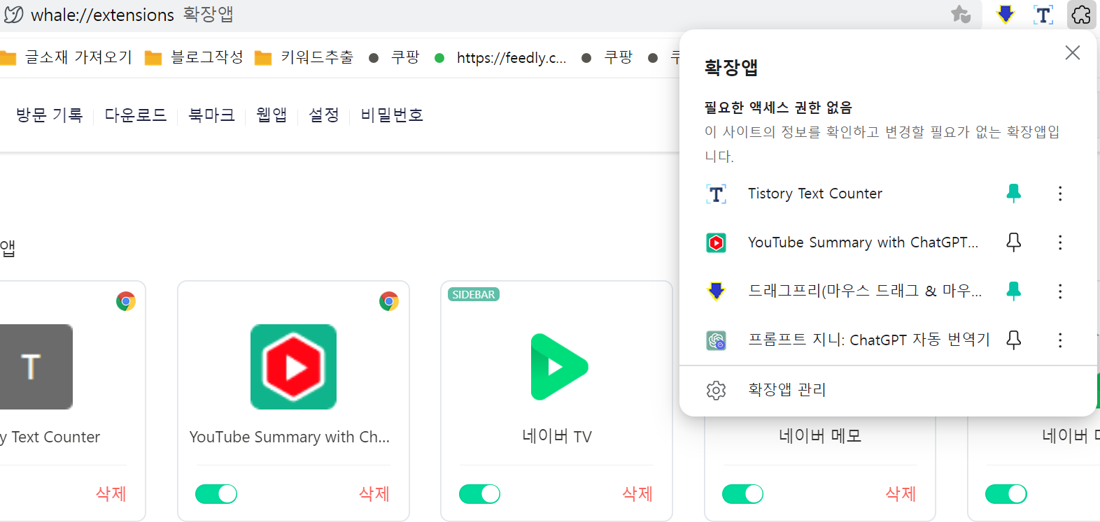 - 1 UberSorgest는 Chrome에서만 작동합니다. 먼저 Chrome을 실행하고 아래 링크를 클릭하여 온라인 스토어에 들어갑니다. 다만, 저는 네이버 웨일 브라우져도 쓰고 있는데요. 네이버웨일에서는 확장앱 관리를 통해서 크롬웹스토어 앱을 같이 사용하실수 있습니다.