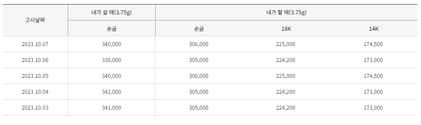 10월 둘째주 금값