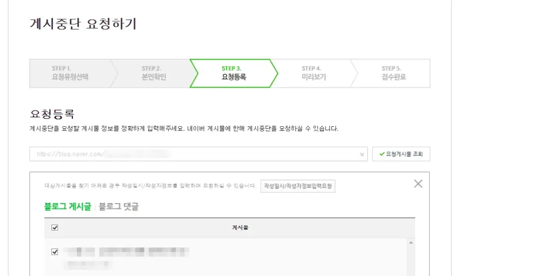 기본적인 개인 정보, 휴대전화 인증 그리고 게시중단 요청하는 본인 신상정보와 요청대상의 사이트 , 본인의 블로그 주소 , 구체적인 권리침해 표현이나 내용 정도를 신고 합니다.