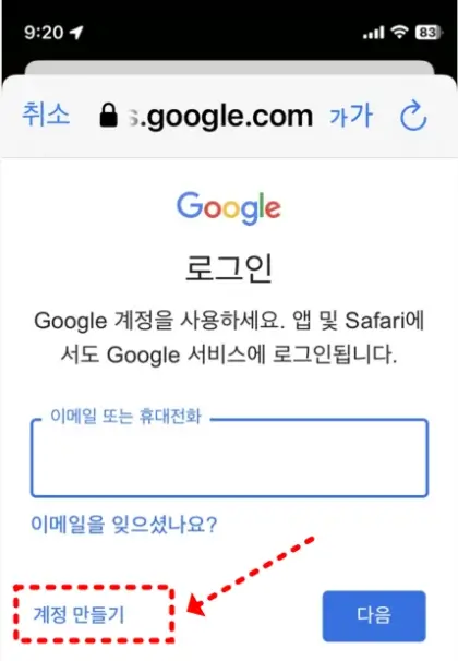 그러면 로그인 화면에 "이메일 또는 휴대전화"를 입력하게 되어있고 , 그 아래에는 "계정 만들기" 파란색 글자가 있습니다. 여기서 우리는 "계정 만들기"를 통해서 새로운 계정을 만들 것입니다.