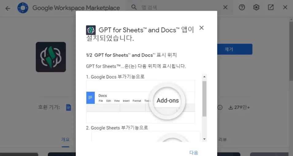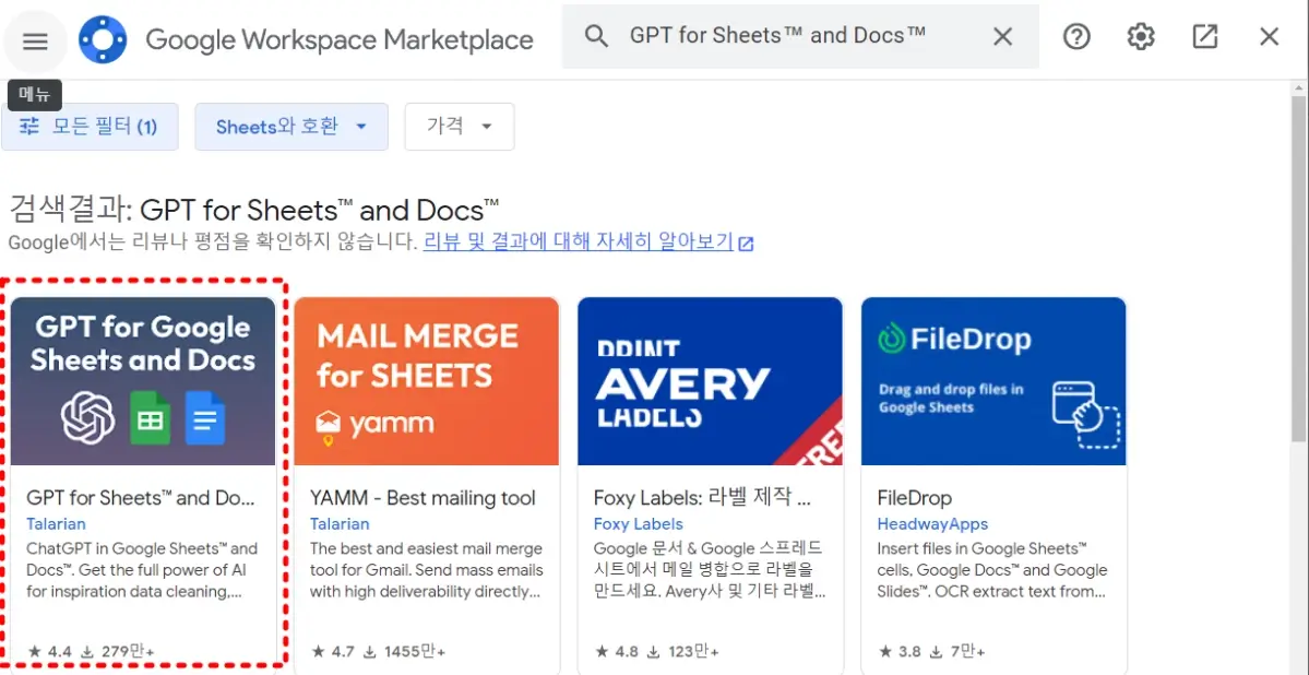 구글 스프레드 시트에 확장 프로그램 설치하기