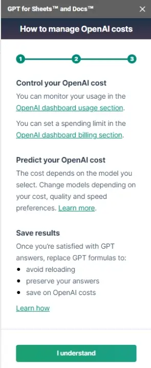 이렇게 스프레드시트 나 구글독스 사용시에는 API를 사용하기 때문에, 토큰이라는 비용이 차감되게 됩니다. 물론 결제정보만 입력 하시면 18$까지 무료이기는 하지만, 지속적으로 사용하기에는 우려가 되신다면, 그냥 정확하고 상세한 프롬프트만 입력하셔서 사용하시면 됩니다. 여기에는 두가지 프롬프트를 기본적으로 제시해 드릴수 있습니다.