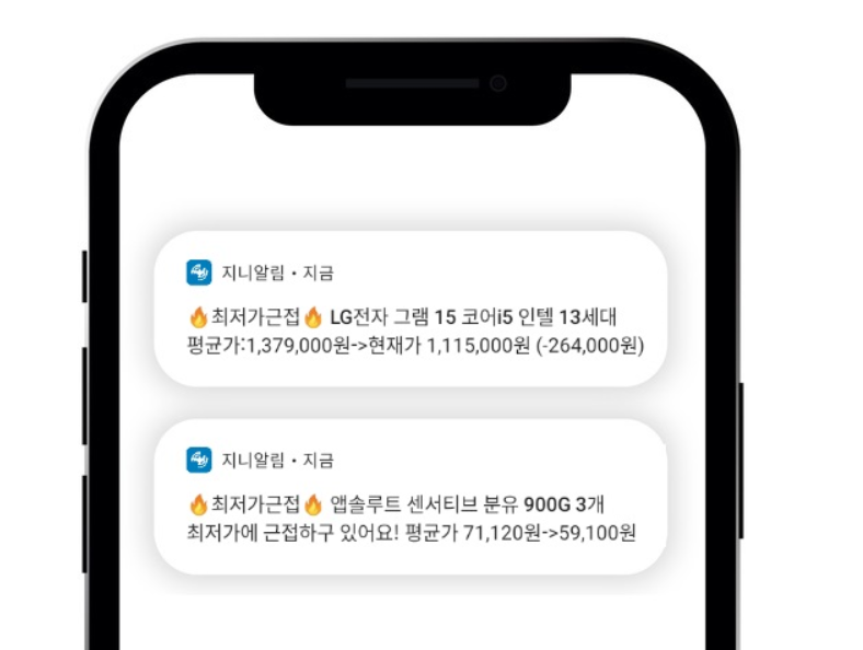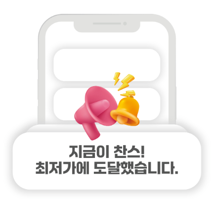 사용자가 원하는 상품의 가격을 설정해 두면, 해당 상품이 역대 최저가에 근접하거나 가격 변동이 있을 때 실시간으로 알림을 받을 수 있습니다.