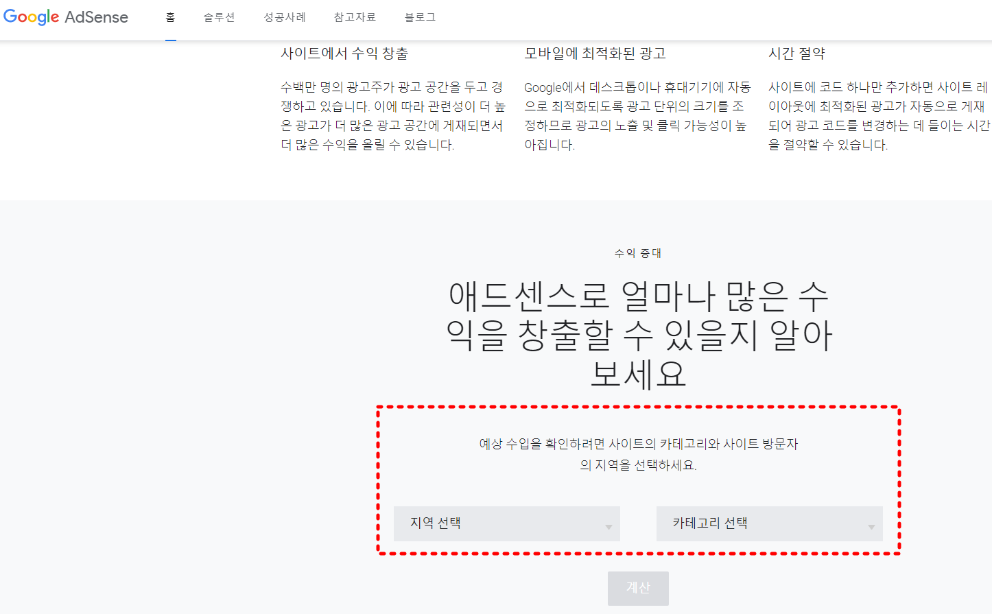 아래와 같이 '애드센스' 홈페이지로 들어 가셔서 '지역'을 입력 하시고 '카테고리'를 선정 하시면 애드센스 평균적 예상 수익이 어느 정도인지를 확인 하실수 있습니다. 한번 확인해 보시고 , 수익이 높은 카테고리를 선정해 보시는 것도 내 블로그 카테고리를 선정하는 방법 중 하나가 될 것입니다.