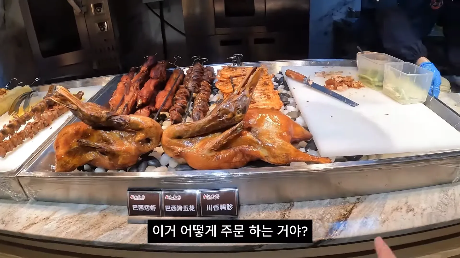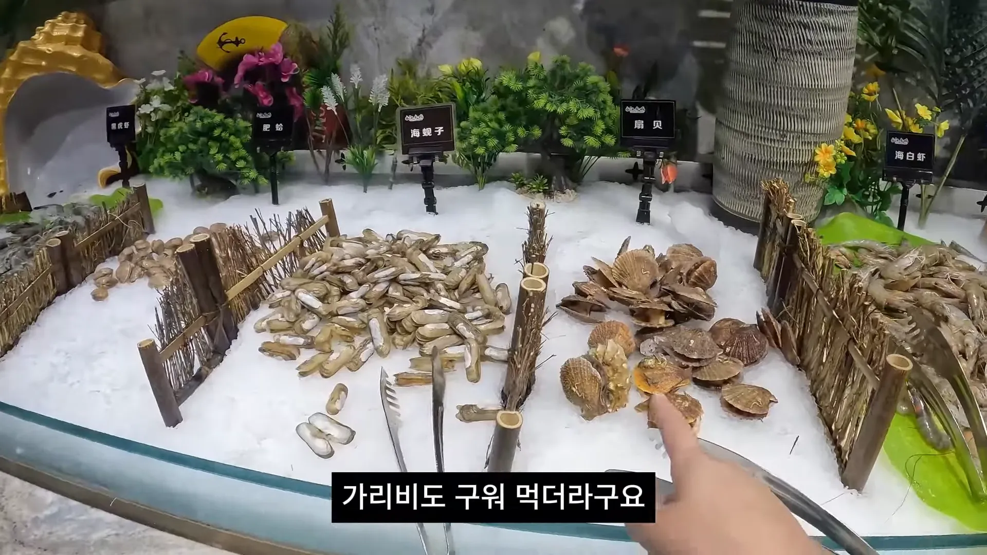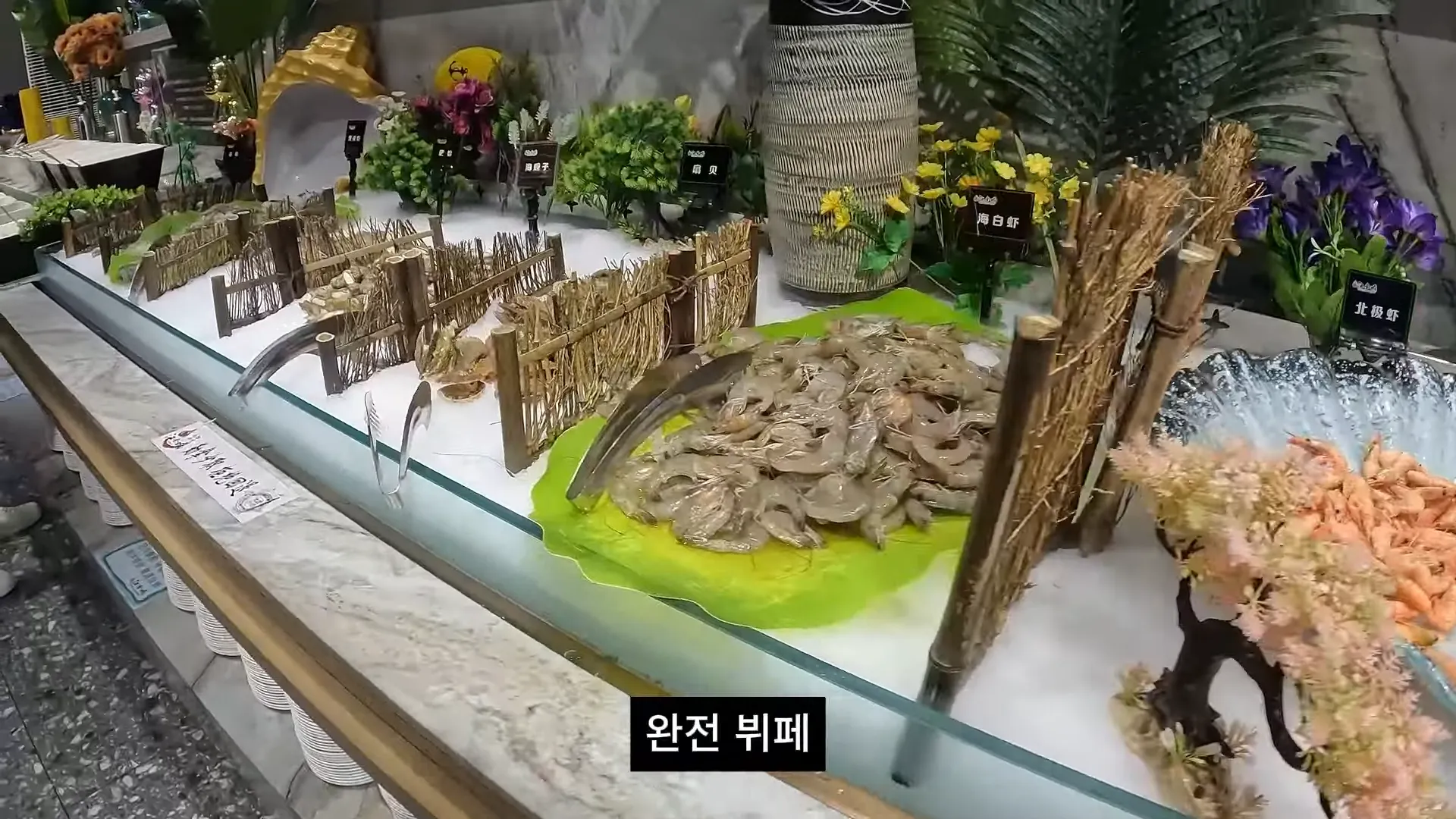 옌타이 여행의 하이라이트는 바로 '먹방'이었어요! 저녁 식사 장소는 조이시티 쇼핑몰 근처에 있는 '한진성(韩进城)'이라는 뷔페식 식당이었는데, 영상만 봐도 군침이 싹 돌더라고요. 고기, 해산물, 음료수, 심지어 주류까지 모두 무제한으로 즐길 수 있는 곳이었어요.