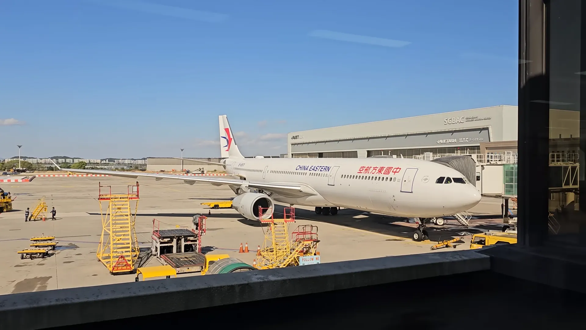 이번에는 김포에서 출발하는 동방항공입니다. 동방항공은 스카이팀 소속이라서 대한항공 마일리지 적립이나 라운지 이용 등 혜택을 받을 수 있어요. 이게 정말 큰 장점이죠! 토요일 출발이었는데도 카운터는 한산해서 좋았습니다. 탑승 기종은 에어버스 A330! 6년 된 비교적 신기종이더라고요. 좌석 배열은 2-4-2였고, 시트는 밤색으로 깔끔했습니다. 무엇보다 좋았던 건, 기내 엔터테인먼트 모니터가 있다는 점! 짧은 비행이었지만 영화나 에어쇼를 볼 수 있어서 지루하지 않았어요.
